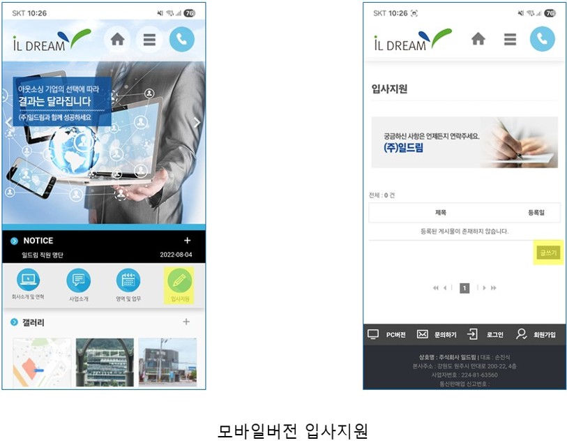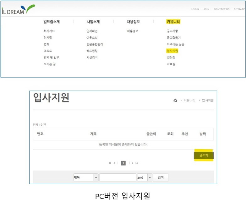 1. 커뮤니티 탭 아래에서 세번째에 있는 입사지원을 클릭합니다.