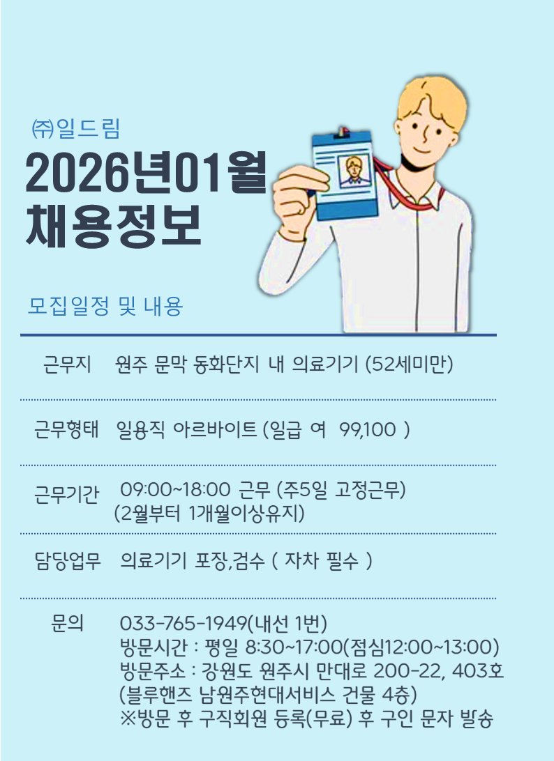 원주 문막 동화단지 내 의료기기 여 모집